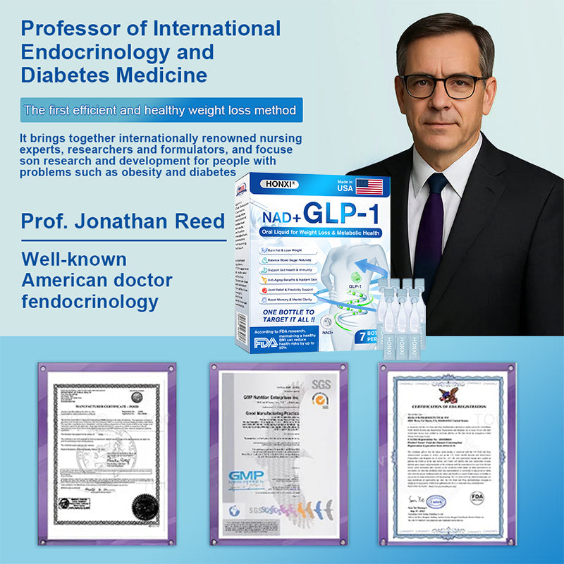 "As an endocrinologist, I am committed to finding effective and natural solutions for metabolic health and weight management. After extensive research and clinical trials with over 5,000 participants, I have found that HONXIยฎ NAD+ GLP-1 Oral Solutionย offers remarkable benefits for metabolism, appetite control, and overall well-being. This formula naturally supports G ๐ P-1 activation, helping regulate blood sugar levels, curb cravings, and enhance fat burning. Its powerful blend of apple cider vinegar, turmeric, and other natural ingredients not only aids in healthy weight loss but also promotes digestive health, boosts immunity, and supports long-term metabolic balance. With the backing of modern medical research, HONXIยฎ NAD+ GLP-1 Oral Solutionย is a trusted, science-driven choice for those seeking a natural and effective approach to weight management and overall health."